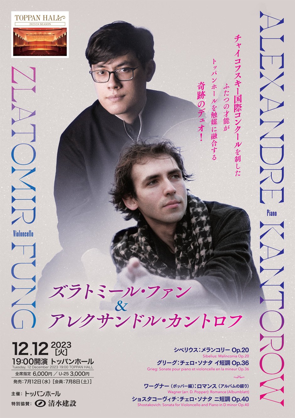 ズラトミール・ファン(チェロ)&アレクサンドル・カントロフ(ピアノ)【完売】