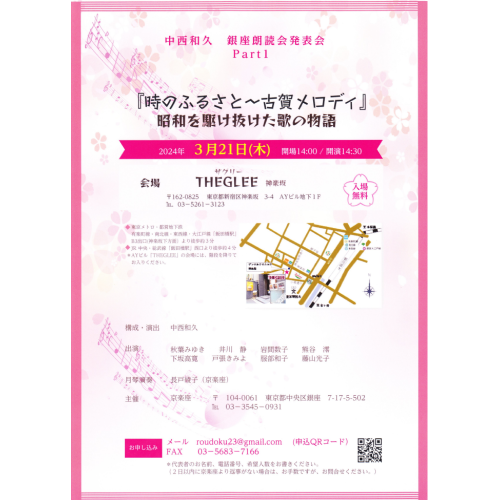 | 參加費用 | ticket 入場無料 ※受付時ドリンク代別途500円のお支払いをお願いしております お申込みは下記メールアドレスにおねがいいたします。 roudoku23@gmail.com |