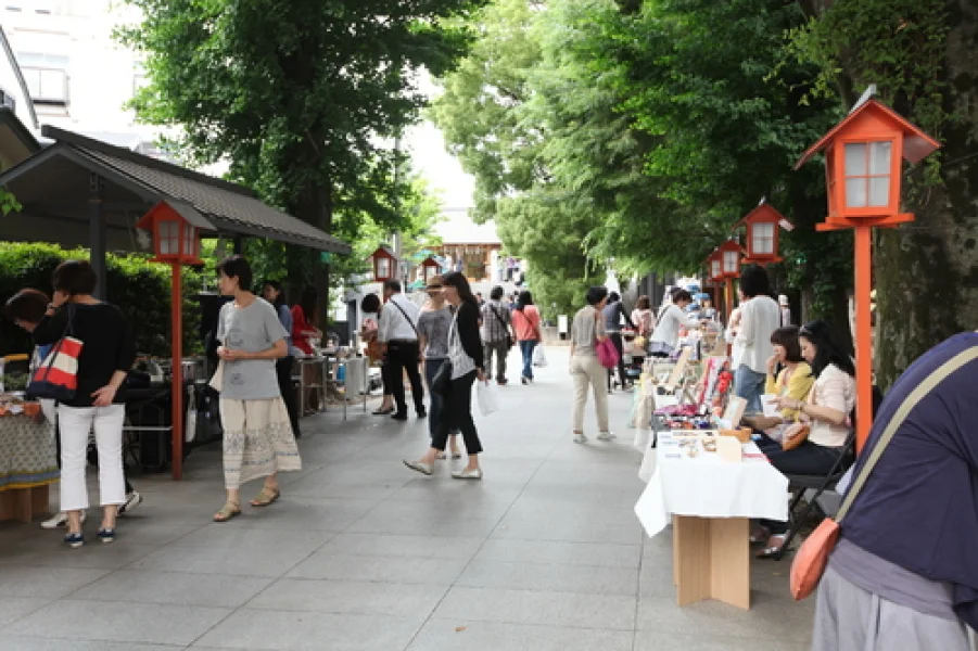 アクセサリーや雑貨、和小物など、こころ華やぐお店が境内に並びます。