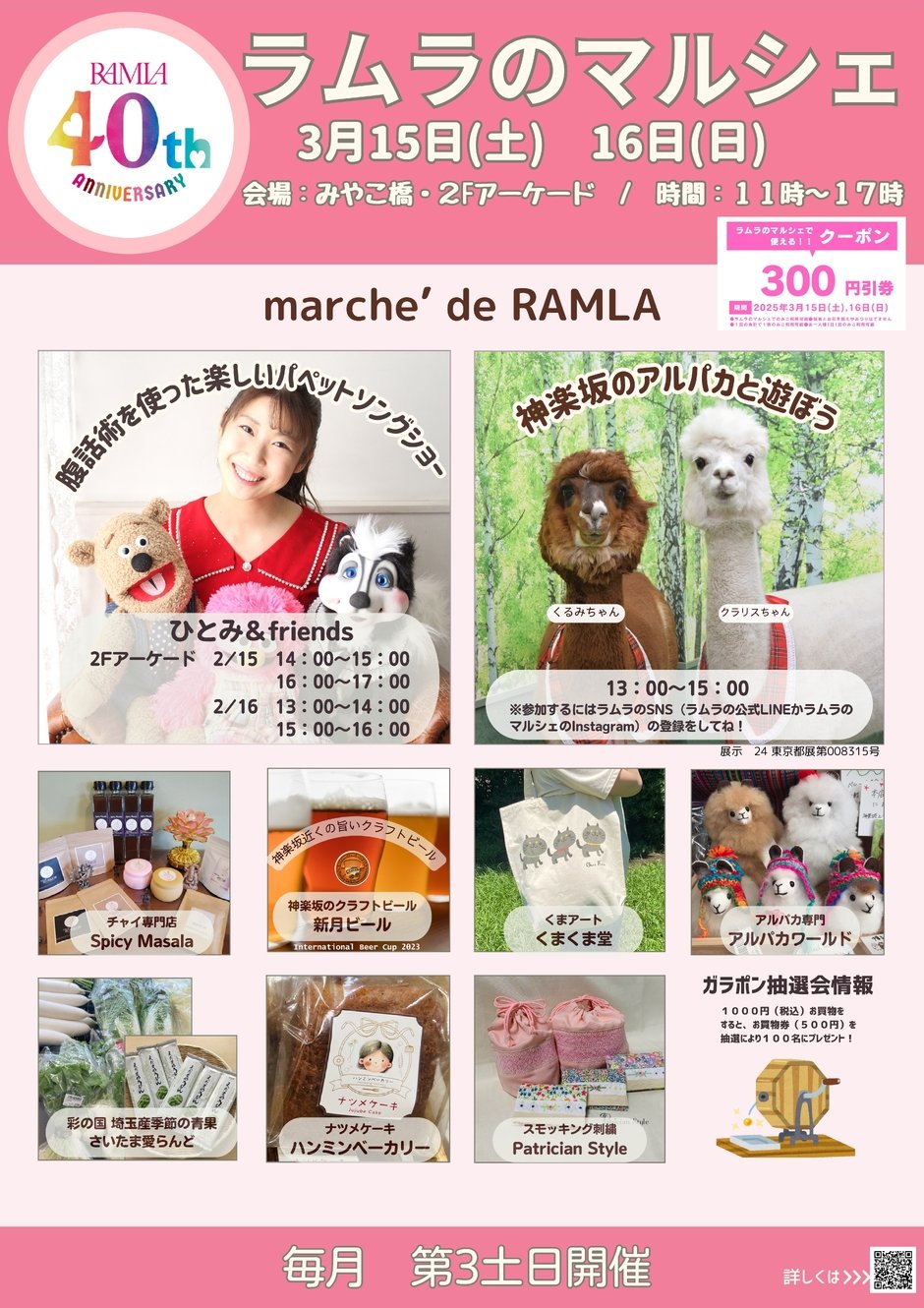 ▶▶3/15(開催)-3/16(中止)▶▶ 毎月第3土曜日・日曜日は「ラムラのマルシェ」!!