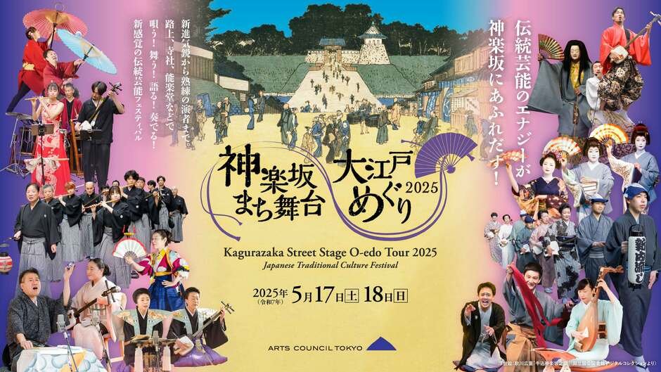 公益財団法人東京都歴史文化財団 アーツカウンシル東京とNPO法人粋なまちづくり倶楽部は、伝統芸能フェスティバル「神楽坂まち舞台・大江戸めぐり2025」を、令和7年5月17日(土)、18日(日)に開催します。江戸情緒が残る神楽坂を舞台に、講談や浪曲、三味線、能、日本舞踊など多彩な演目が繰り広げられます。芸者衆との「お座敷遊び体験」や「新内流し」など、神楽坂ならではの催しも充実。日本文学研究者ロバート・キャンベル氏がアンバサダーを務め、伝統芸能の魅力を国内外に発信します。