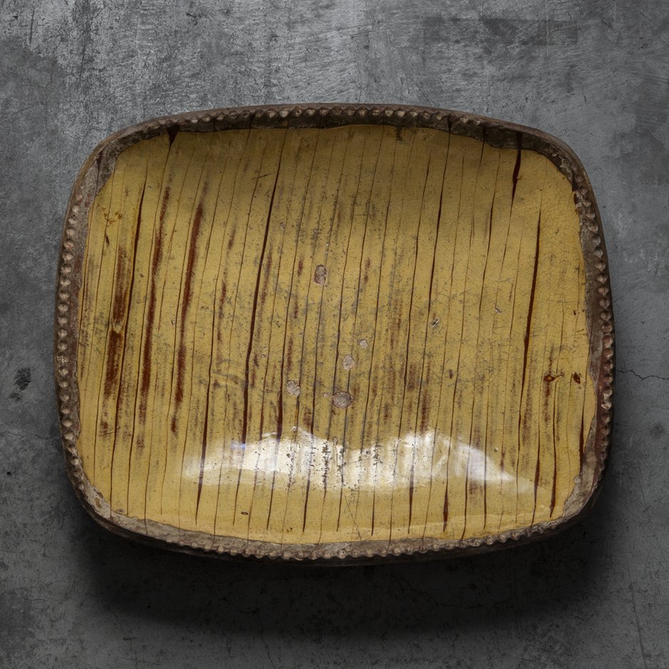 日本で「スリップウェア」というとおもに英国近世のやきものを指し、人物や動物文など鑑賞用の飾皿と、縞文はじめ抽象文の実用品(パイ皿)があります。彼地にさきがけ後者を美的に評価したのは日本人であり、代表はふたり、1920年代の柳宗悦と、1980年ごろの坂田和實でした。ことに骨董界における坂田さんの功績は大きく、(いまとなっては信じがたいけれど)スリップウェアが日本でほとんど売れなかったころから、こつこつと、抽象文の名品を日本に入れつづけました。今展は、坂田さんが請来したスリップウェア十数点ほか、欧州中世陶器や家具、コプト裂など西洋工芸を中心に、美術館 as it is の蔵品と古道具坂田由来の品々約60点を展観します(予約制)。