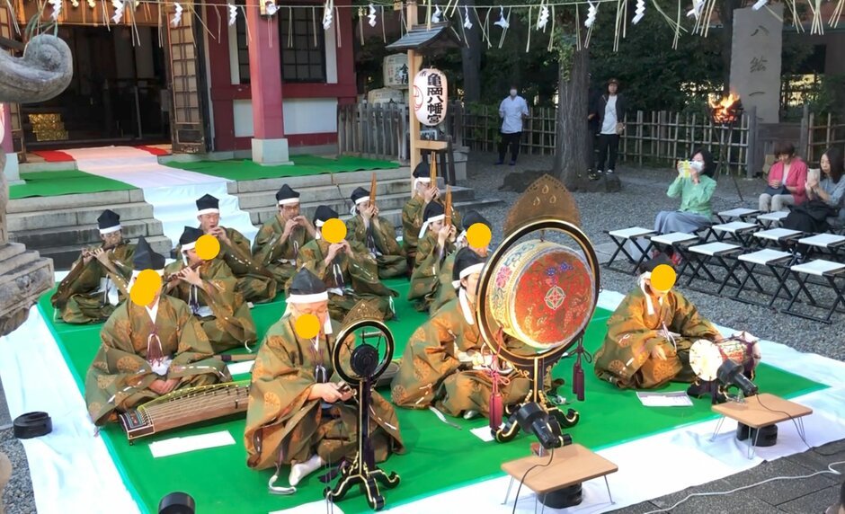 市谷亀岡八幡雅楽の会員がご神前に雅楽、舞楽を奉納いたします。