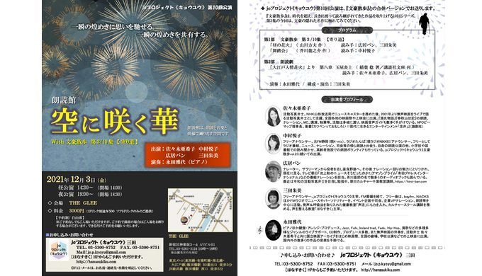 【はなすきく】HP 朗読公演 http://hanasukiku.com でもご案内しています。