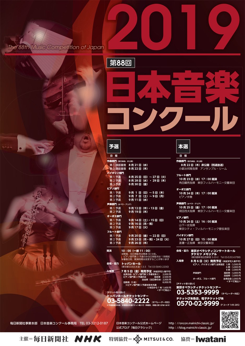 | 聯絡我們 | お問い合わせ: 日本音楽コンクール事務局 03-3212-0187 予選開催日事務局 03-3817-0152 チケットのお申込み: トッパンホールチケットセンター 03-5840-2222 |