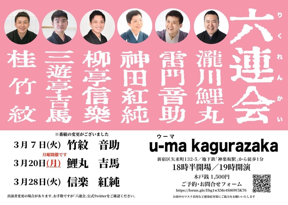 3/20: 瀧川鯉丸 三遊亭吉馬