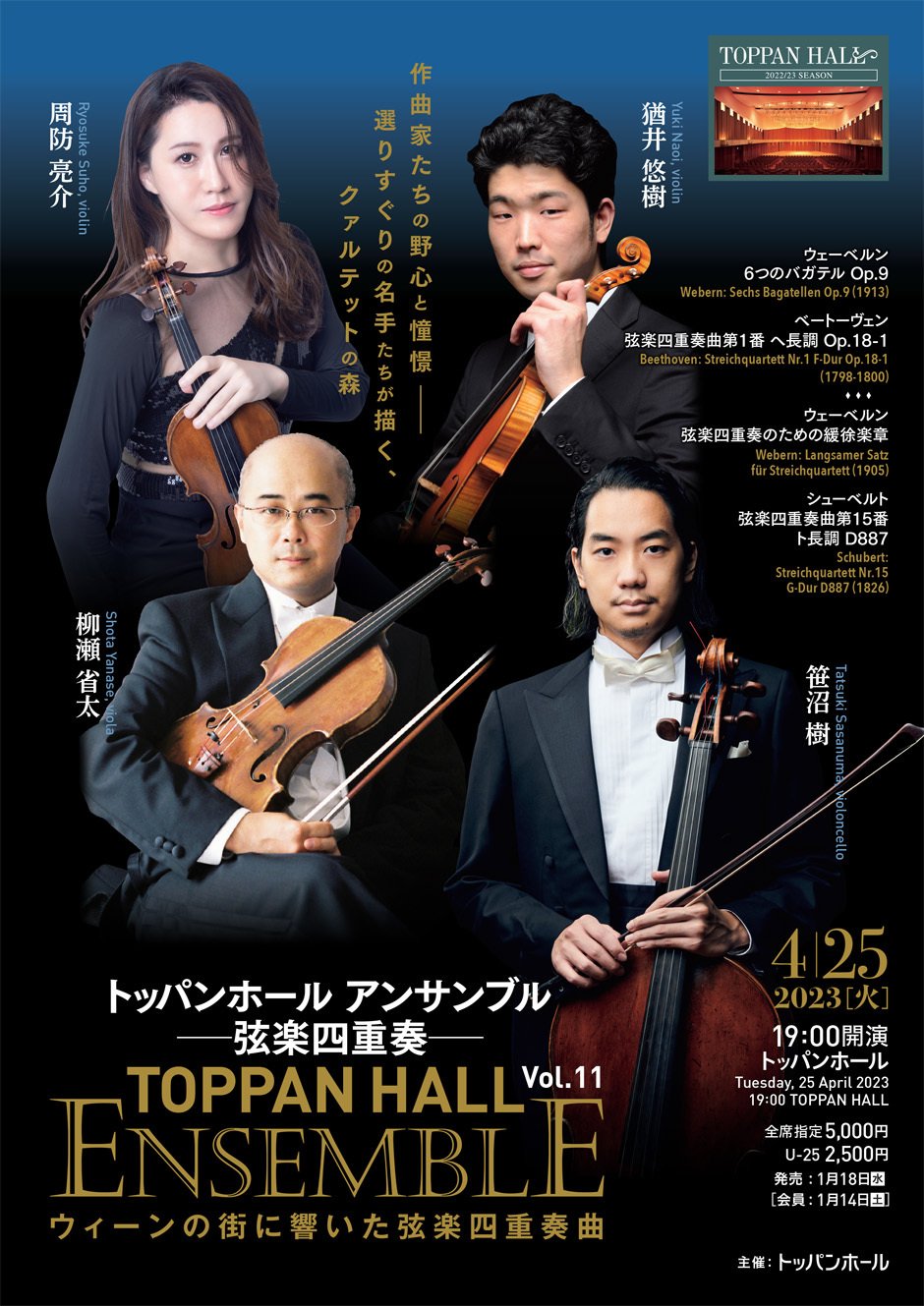 トッパンホール アンサンブル Vol.11 ―ウィーンの街に響いた弦楽四重奏曲【残席わずか】