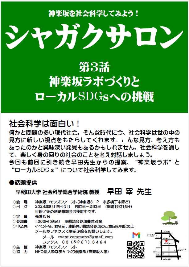【お知らせ】シャガクサロン第3話「神楽坂ラボづくりとローカルSDGsへの挑戦」(2024/8/19)