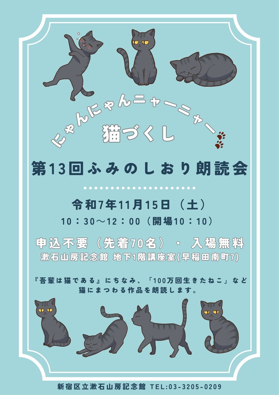 『吾輩は猫である』に『100万回生きたねこ』など、猫にまつわる作品を朗読いたします。