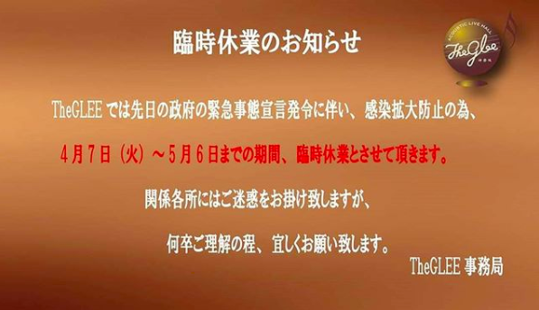 【TheGLEE 臨時休業のお知らせ】