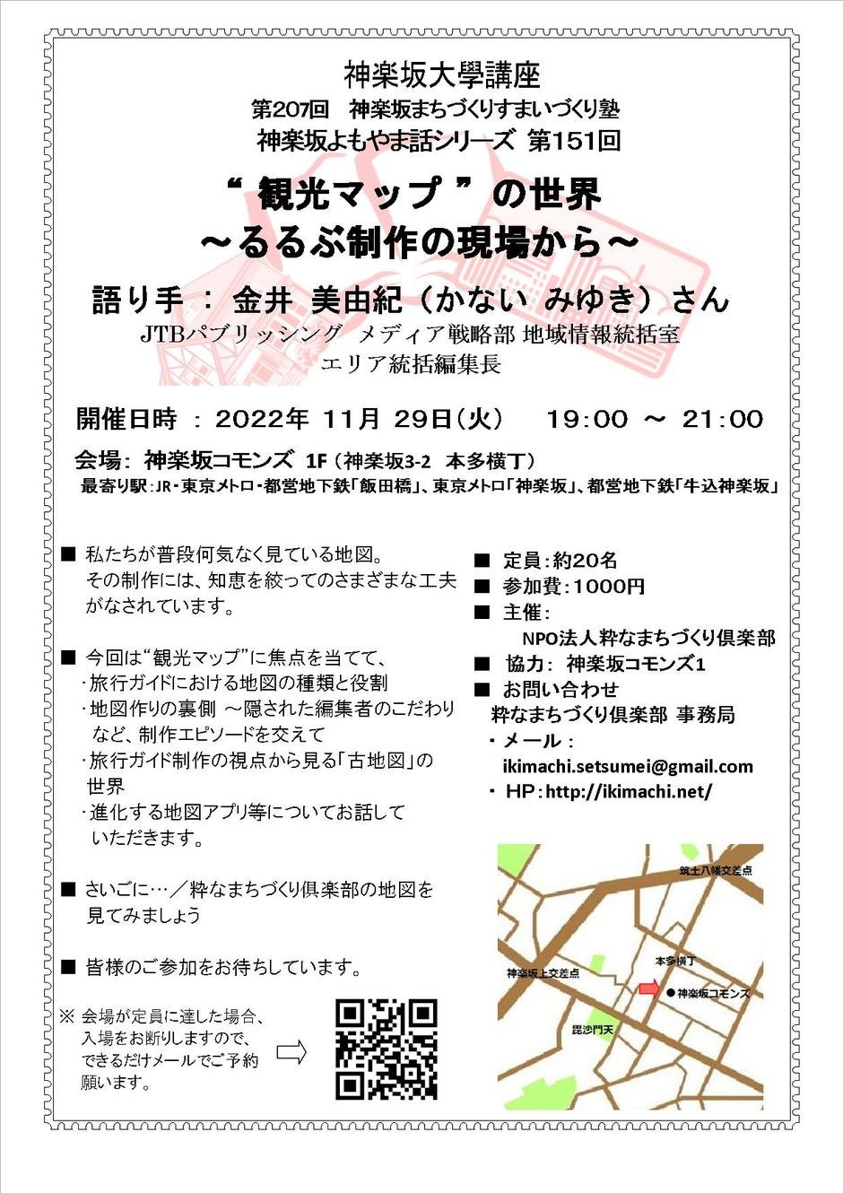 | 地點 | 神楽坂コモンズ 1F (神楽坂3-2 本多横丁) 最寄り駅:JR・東京メトロ・都営地下鉄「飯田橋」、東京メトロ「神楽坂」、都営地下鉄「牛込神楽坂」 |