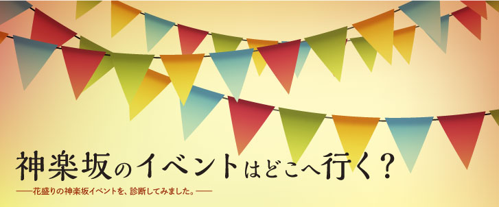 神楽坂で行われるイベントの数は、他のまちに比べてかなり多い。多すぎて疲れ切ってしまうとこぼす人もいれば、商業の活性化には全然結びつかないという声もある。それでは、神楽坂には、どんなイベントがふさわしいのか。現在のイベントの実態はどうなっているのか、編集部で取材しました。