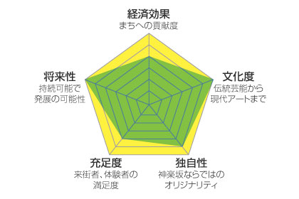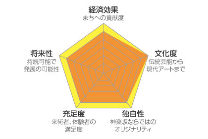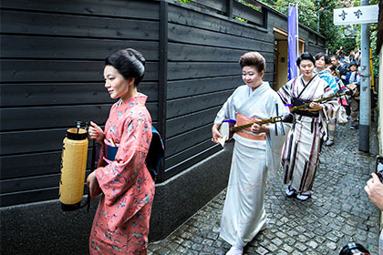 江戸時代からの地割りのままに細い路地や横丁が残り、花柳界の見番や伝統芸能のお師匠さんの稽古場も数多くある神楽坂。こうした雰囲気や風情の中で、新内節や城端曳山祭「庵唄」が路地を演奏しながら流し歩き、毘沙門天善國寺には、仮設の舞台が設けられ、芸能ライブが繰り広げられる。前夜祭と本祭があり、長唄、三味線、尺八、笛、箏、など様々な伝統芸能の魅力に触れられる。2020年の東京オリンピックを視野に入れ、今後江戸東京の文化に期待する幅広い層に支持されはじめている。