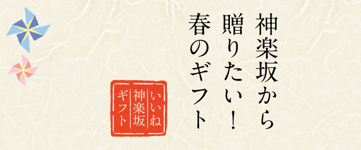 神楽坂が大好きというあの方にも、神楽坂がなつかしいというあの方にも、神楽坂をまだ知らないというあの方にも、この春ぜひ贈りたい神楽坂名店のギフトの数々。どうぞお楽しみに!