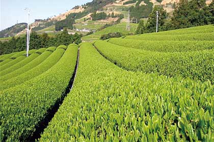 楽山の銘茶のふるさとは、静岡県掛川市。標高532mの栗ヶ岳の東に連なる東山。この山間部特有の気候風土は、「ふくよか」な香りと、「まろやか」な味のお茶を育むのに最適の環境を備えている。