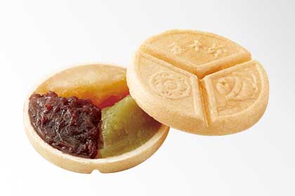 三種の餡が楽しめる華車 大納言・柚子・栗の餡を使用 1個302円