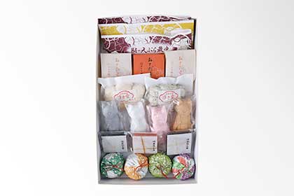 香、線香、匂袋、文香、箪笥香など工夫をこらした商品の数々が並ぶ。化学的な香りが増え続ける今日、古くからある天然の香りをもっと暮らしに、と香りの贈り物を提案している。「鶴賀香」は神楽坂在住の人間国宝、鶴賀若狭掾師匠が新内の天覧演奏会を披露されたことを祝して造られた香。その他にも、春の香りと小物などを詰め合わせた贈り物がそろっている。
