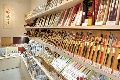 日本の箸は、実に繊細にできている。太さ、長さ、重さ、形状、塗り、装飾など千差万別である。神楽坂6丁目に箸だけの専門店「神楽坂 穂の花」の店内に入ると、その箸が壁一面に並んでいる。その数500種以上。若狭、輪島、津軽など塗りの産地も幅広く、東京の職人によるものもある。たとえば伝統工芸師の手による箸は、塗りの回数が20工程もあり、制作に1年半もかかる。