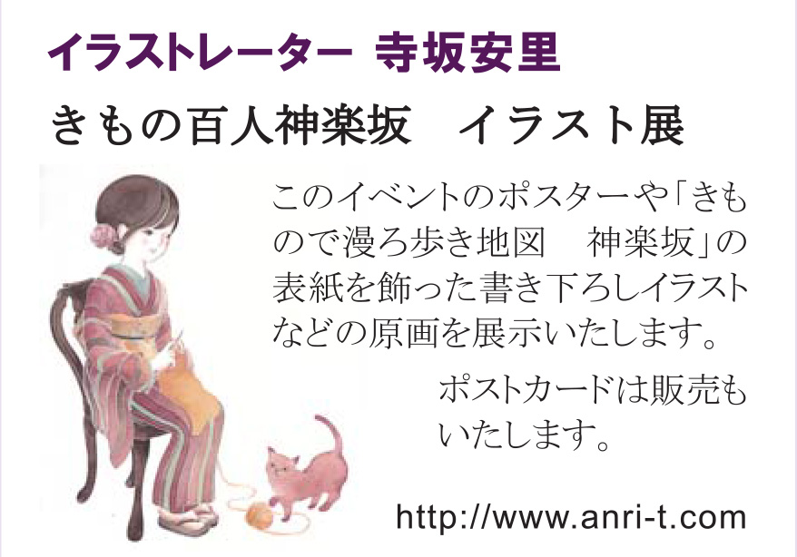 | 神楽坂と着物を愛する地元ゆかりの人々が集まって、”着物が似合う神楽坂”を通して、日本の様々な地域での着物で漫ろ歩きできるまちと、人と、産地と、作家さんとのご縁を紡いでいけるような活動を心がけて会の名称を「きもの百人神楽坂」に変更して、展示販売イべントとして毘沙門天善國寺書院から始まり、赤城神社参集殿、森戸記念館と場所を変えて2015年秋迄開催されました。 しかし、この催しに携わってきた中心人物の逝去により運営スタッフが限られ、この イベントの継続が難しくなったために2016年秋からしばらくの間、休止状態でありました。 そして、今、新たな会に向けて体制を整えてきた結果、赤城山麓から北関東に広がる着物産地の作品を取り入れながら新たな企画として生まれ変わりました。お茶席や投扇興体験もあり楽しい企画内容です。また会場は、赤城山に縁の深い赤城神社参集殿になります。どうぞふるってご参集ください。 |