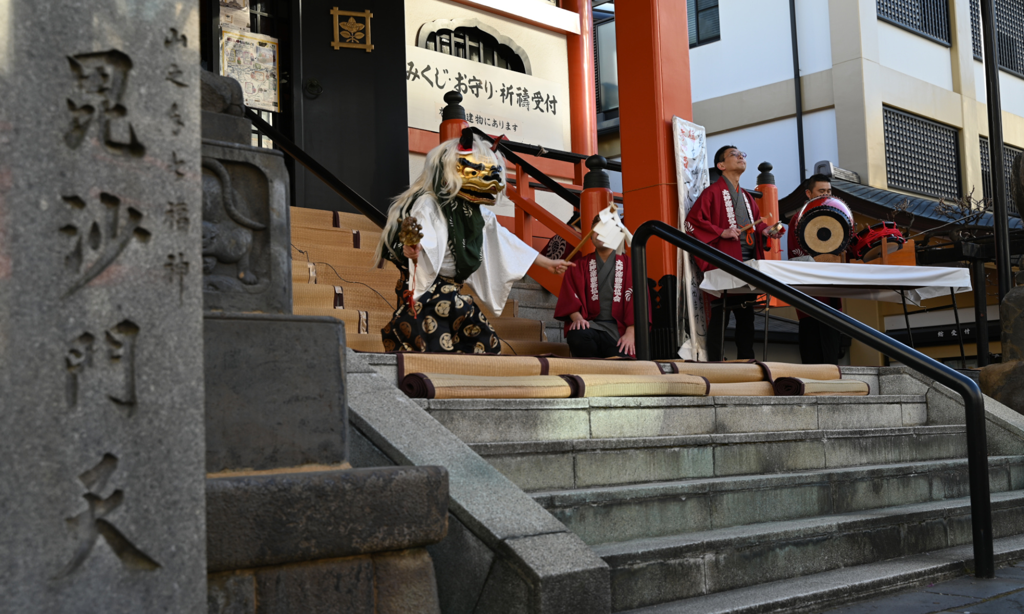 「伝統芸能奉納と華やかな豆まき、毘沙門さまから福をさずかる」