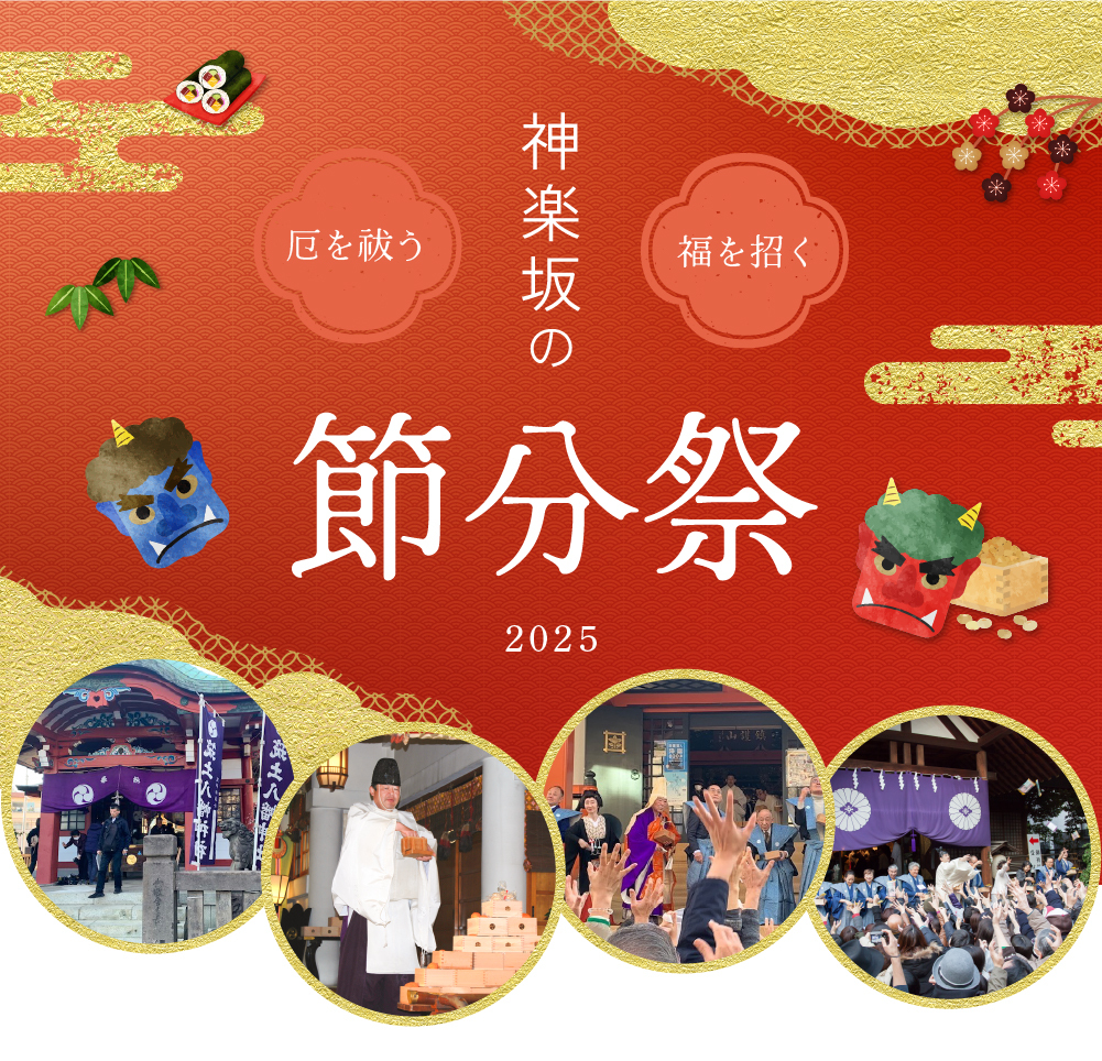 2025年の節分は2月2日。神楽坂近辺の寺社仏閣でも、善男善女による豆まきが行われます。